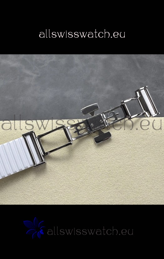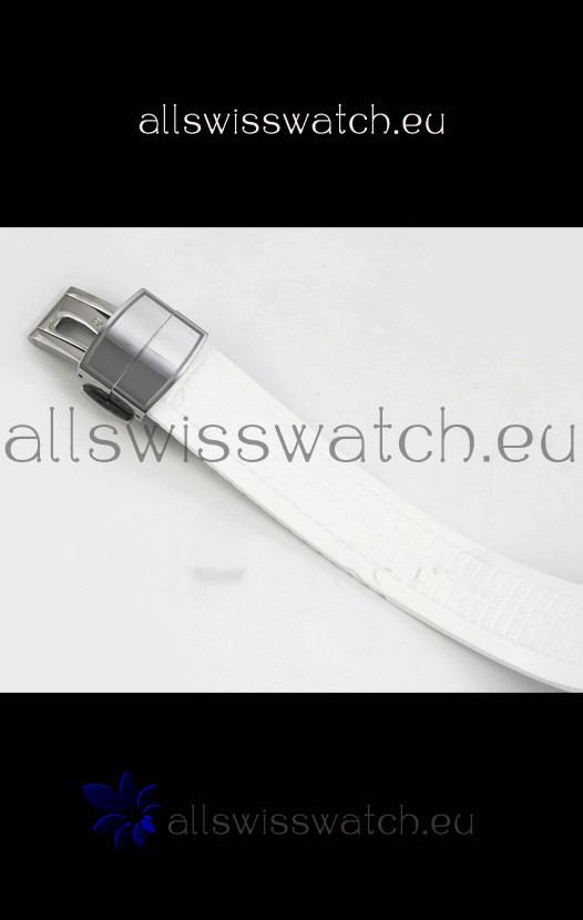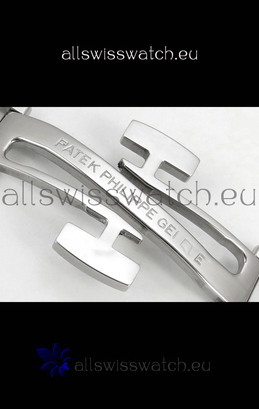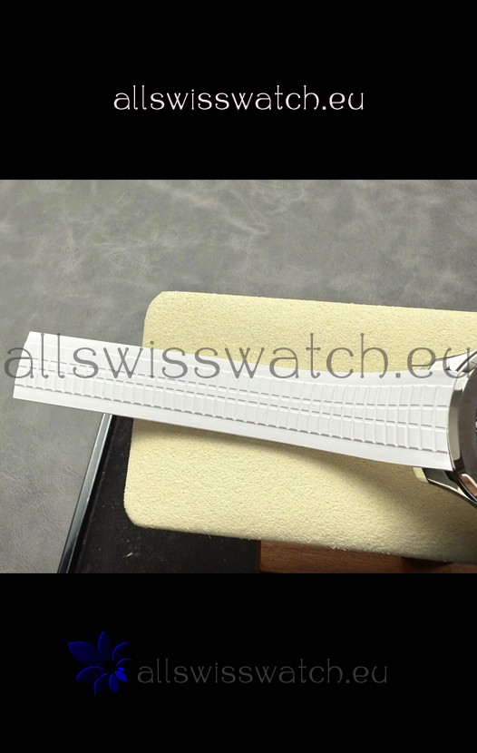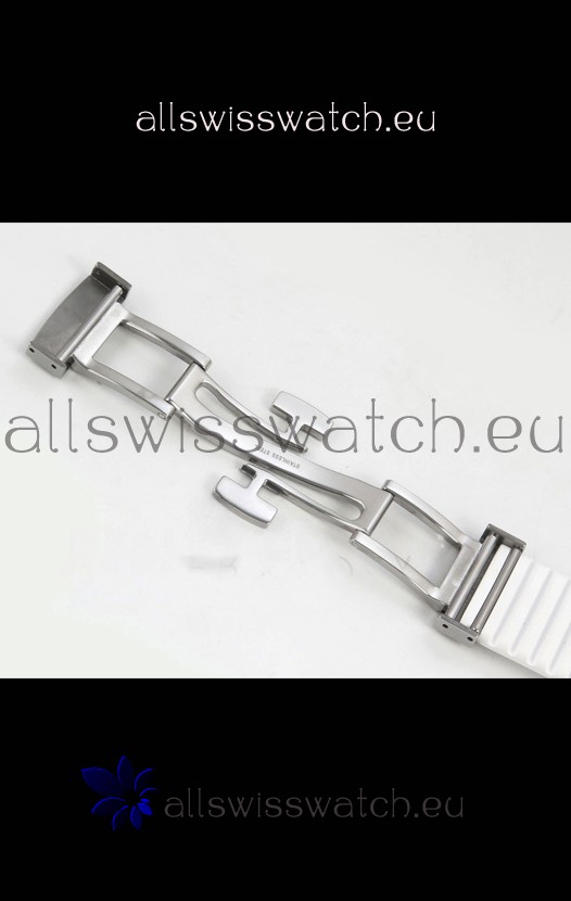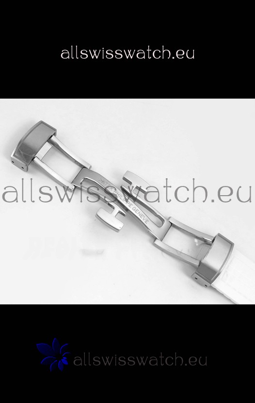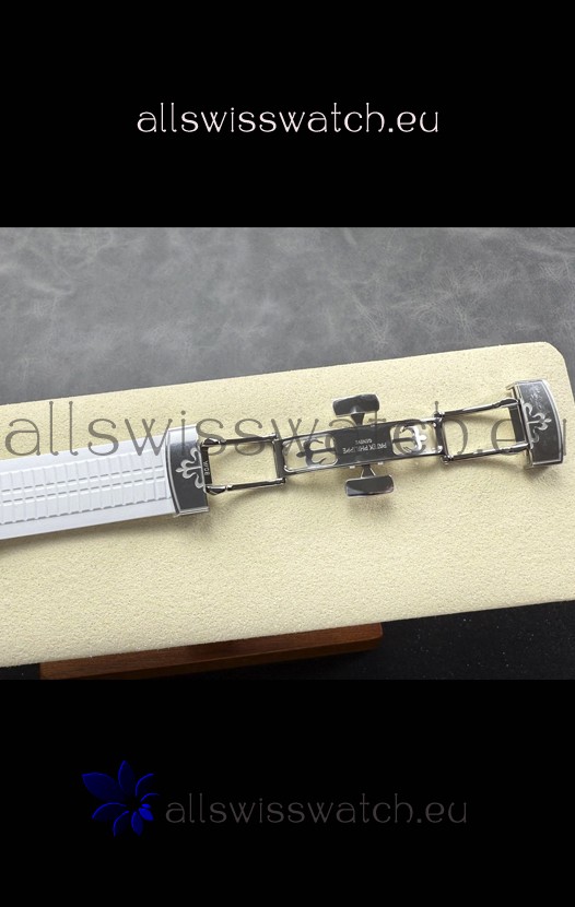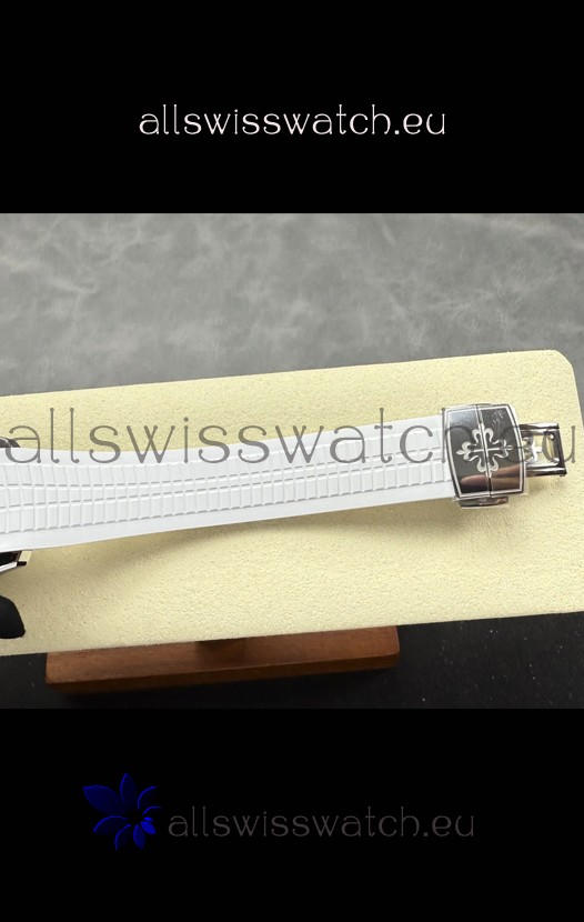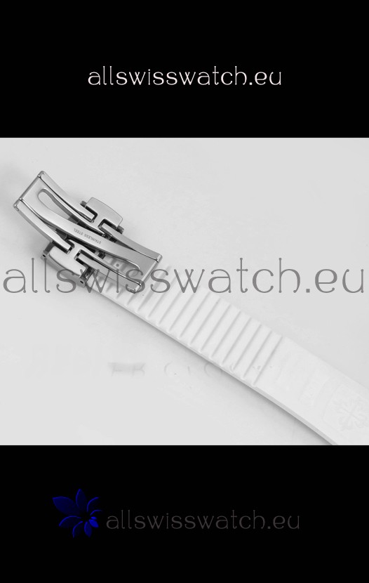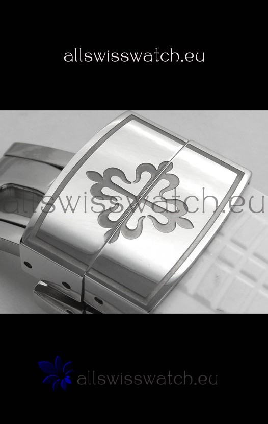 Curved Rubber Strap with Steel Folding Clasp complete with Patek Philippe Markings. A Highly Updated Clasps for this series with much more accurate markings/engravings.