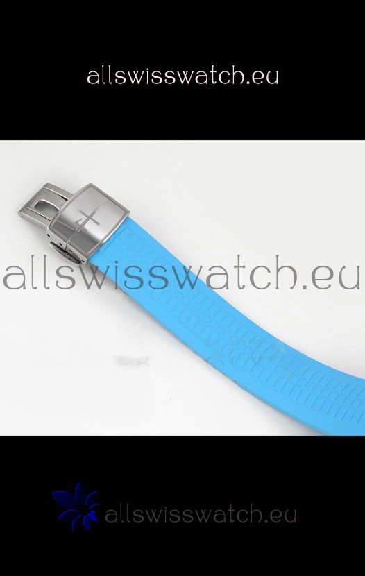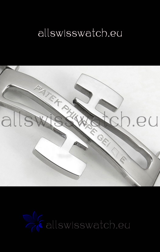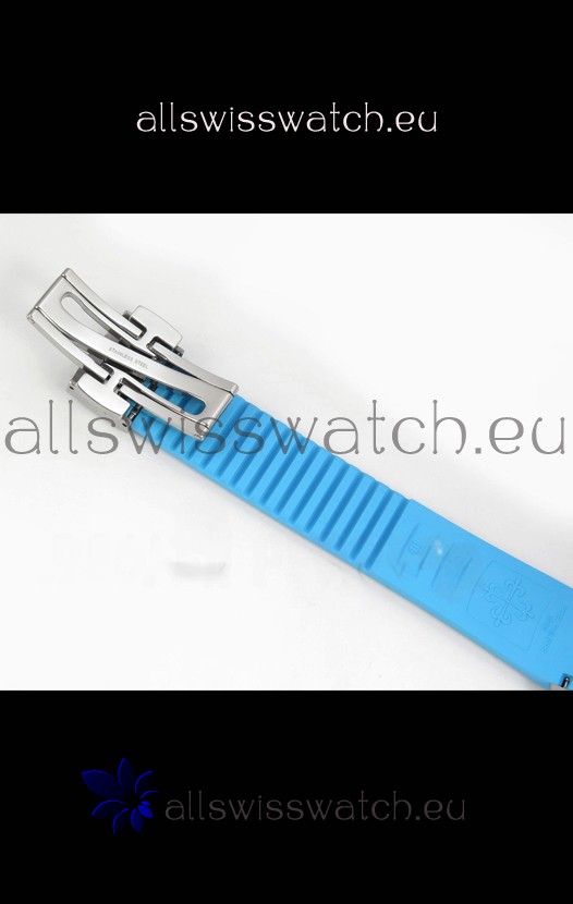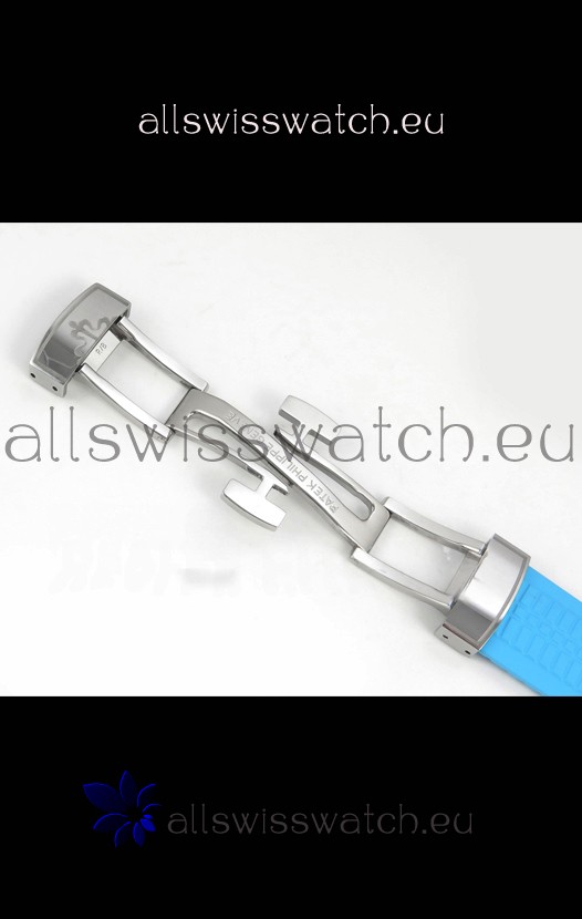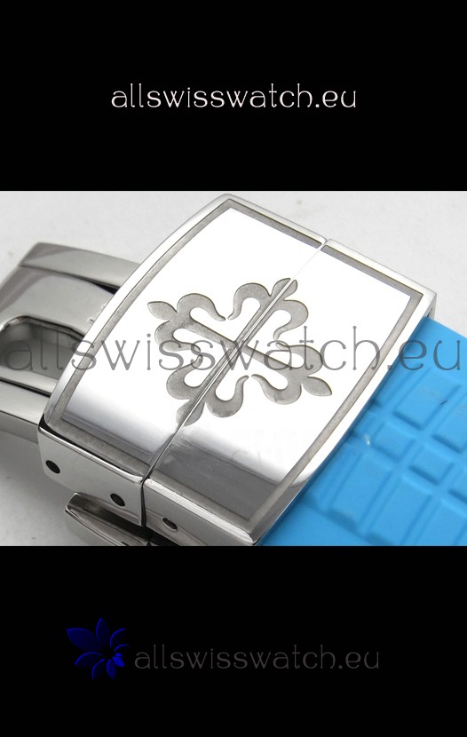 Curved Rubber Strap with Steel Folding Clasp complete with Patek Philippe Markings. A Highly Updated Clasps for this series with much more accurate markings/engravings.