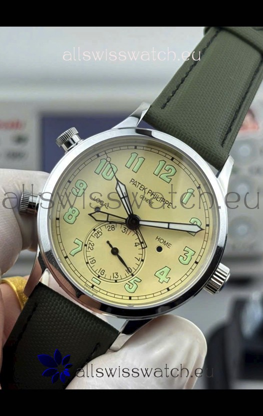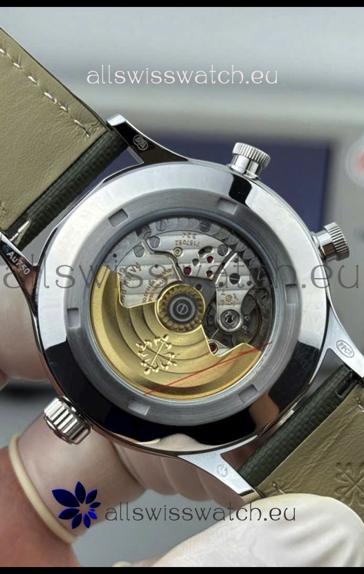 Genuine Swiss 9015 Movement assembled to Resemble the Authentic Patek Philippe PP 240 Calibre Style Movement. Updated Rotor, Bridged and Engravings on Movement with Rose Gold Plated Patek Philippe Stamped Rotor