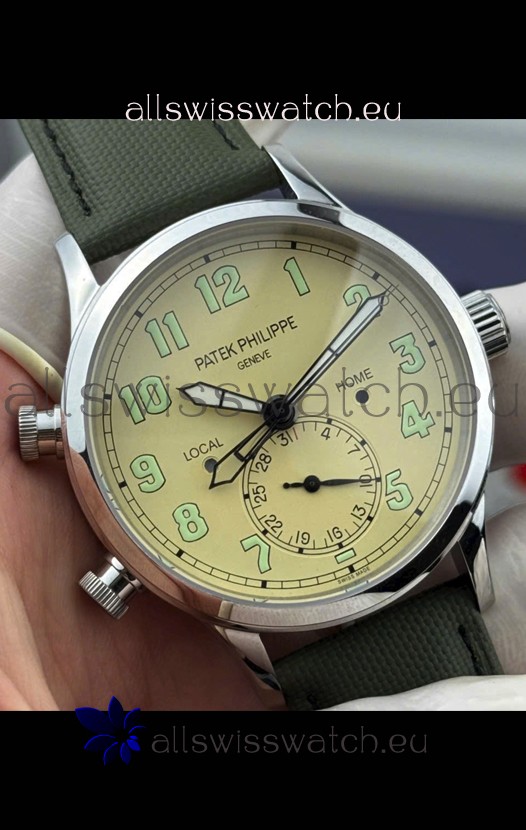 Genuine Leather Strap with Steel Folding Clasp complete with Patek Philippe Markings.