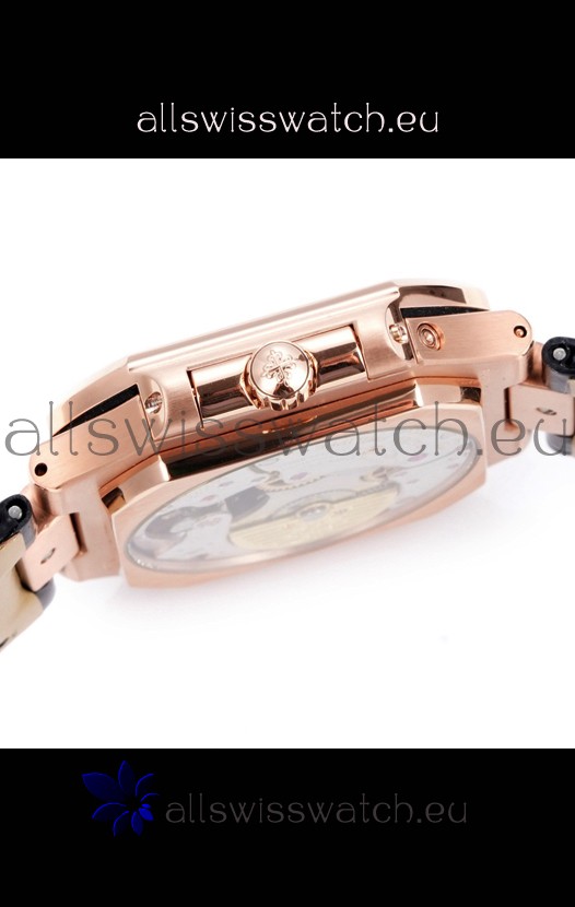 18K Rose Gold Plating on 904L Solid Stainless Steel Case with Open Case Back Cover in Steel.