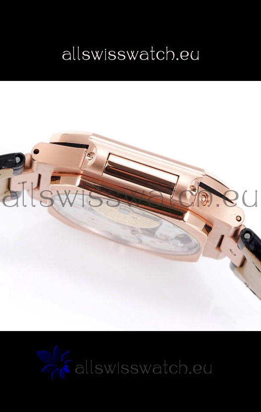 18K Rose Gold Plating on 904L Solid Stainless Steel Case with Open Case Back Cover in Steel.