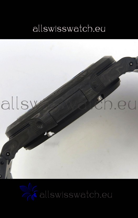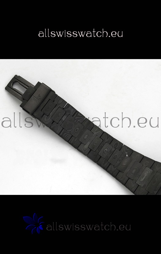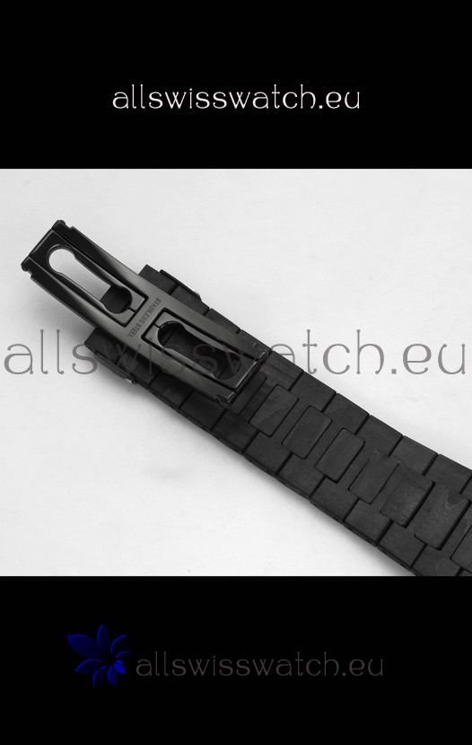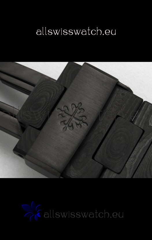 Forged Carbon Fiber Strap linked with Pins as per the originals with Signature Patek Philippe Clasps as per the originals.