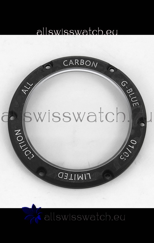 Blue Carbon Dial with Date Window at 3 O'clock. Super Lumed Bright Hour Markers.