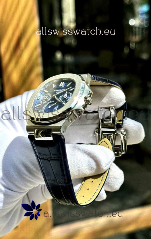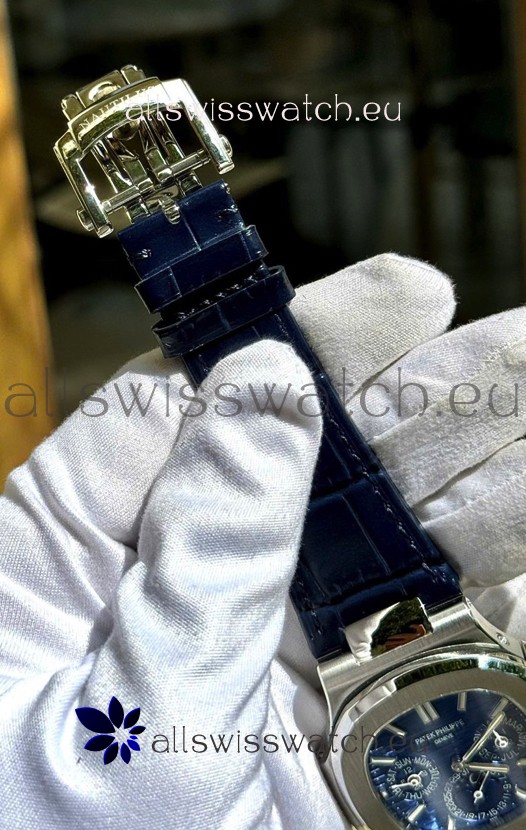 Genuine Leather Strap with Double Fold Stainlless Steel Clasps with Patek Philippe Markings/Engravings