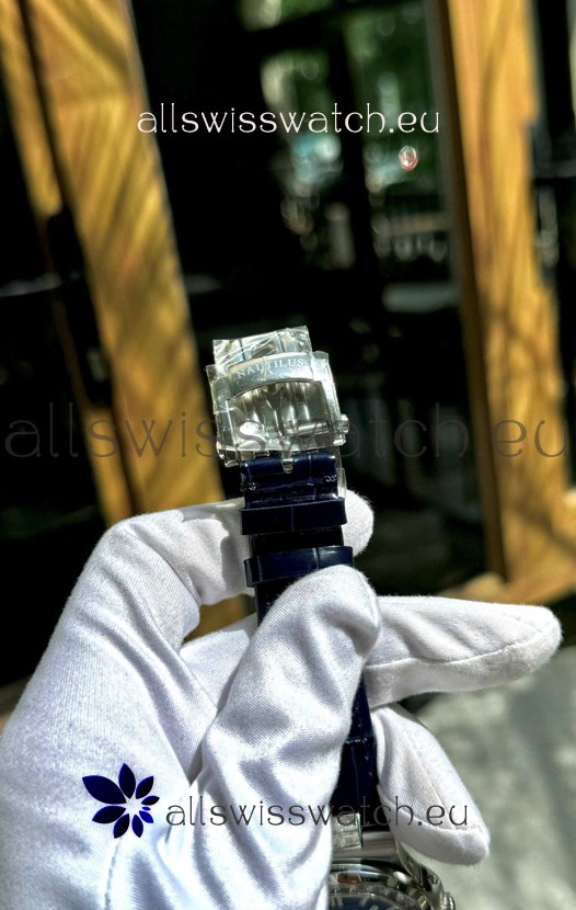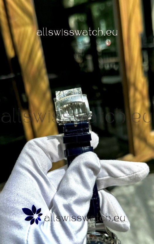 Genuine Leather Strap with Double Fold Stainlless Steel Clasps with Patek Philippe Markings/Engravings