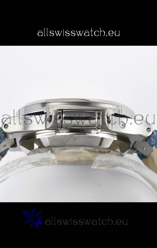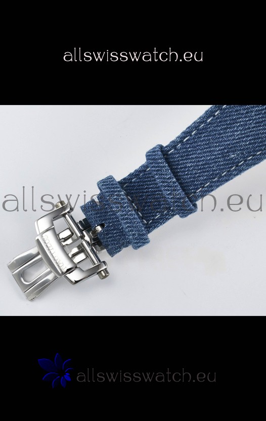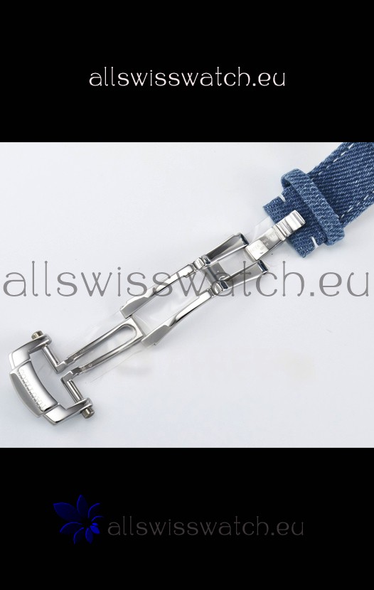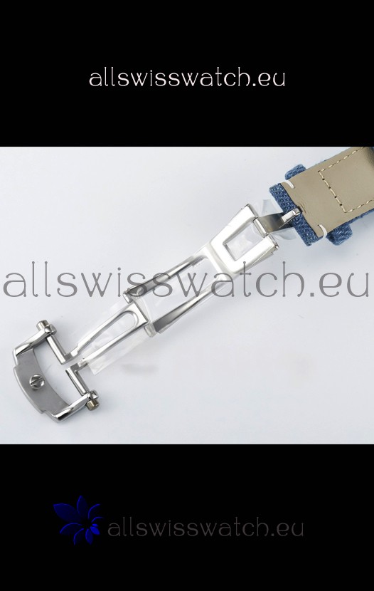 Genuine Fabric/Leather Hybrid Strap in Blue with Double Fold Stainlless Steel Clasps with Patek Philippe Markings/Engravings