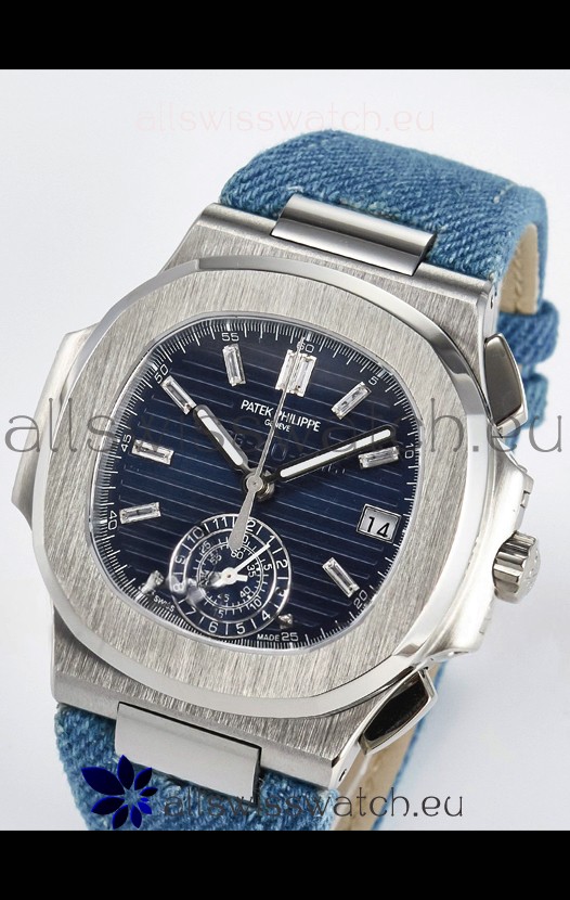 Patek Philippe Nautilus 5980/60G-001 Blue Dial Fabric Strap Crystal Numerals