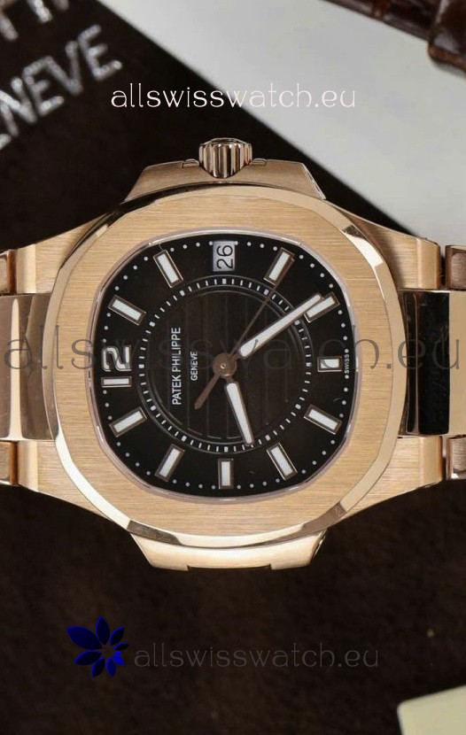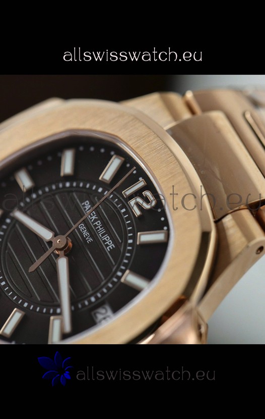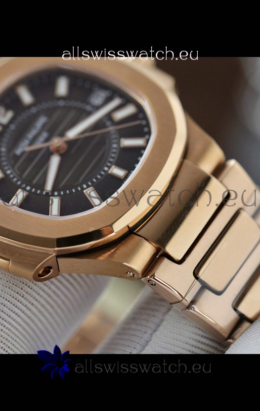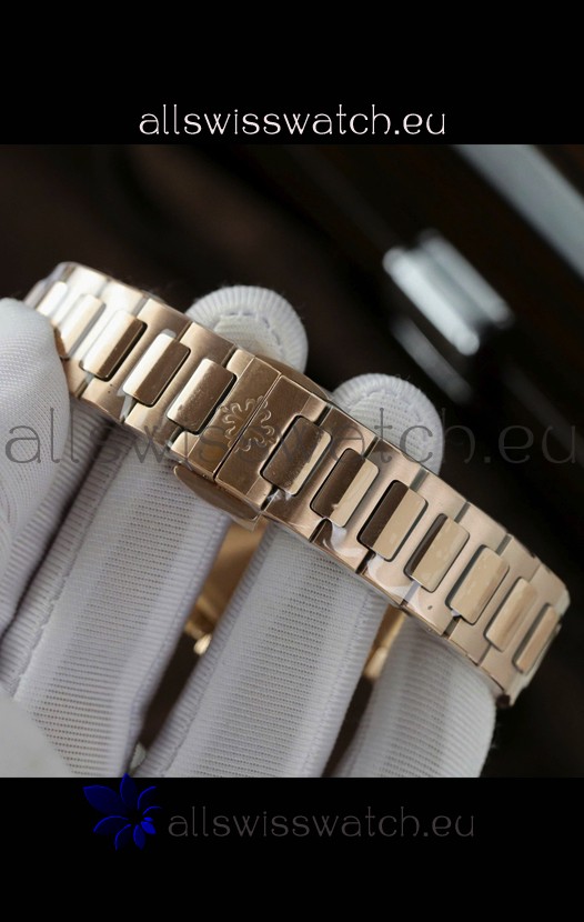 Rose Gold Plating on 904L Stainless Steel Strap with Steel Folding Clasp complete with Patek Philippe Markings.