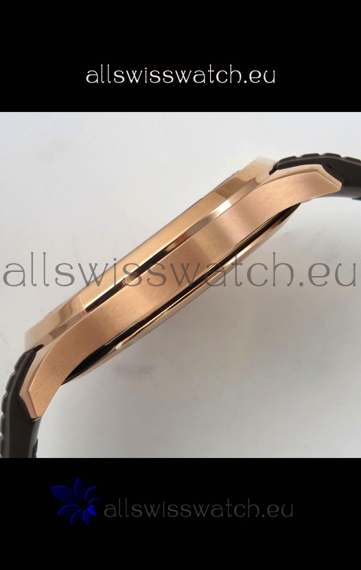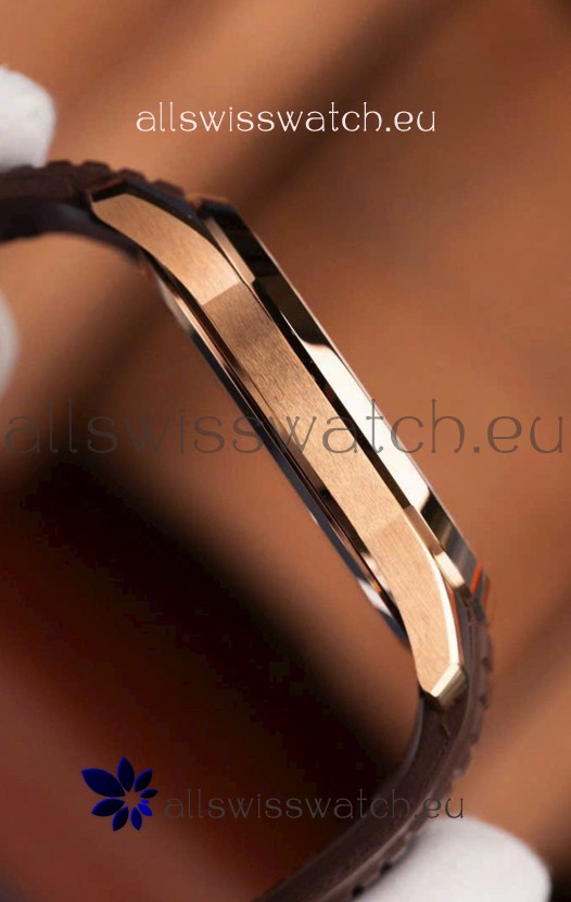 Rose Gold Plating on 904L Polished Stainless Steel Case with Brushed Bezel exactly as per the original
