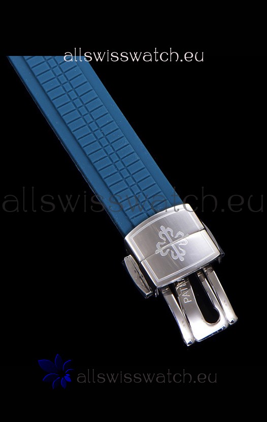 New Style Curved Rubber Strap with Steel Folding Clasp complete with Patek Philippe Markings.