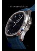 Blue Colored Textured Dial with Date Window at 3 O'Clock. Diamonds Bezel