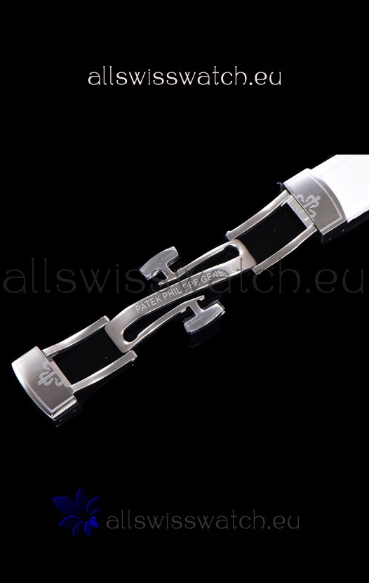 New Style Curved Rubber Strap with Steel Folding Clasp complete with Patek Philippe Markings.