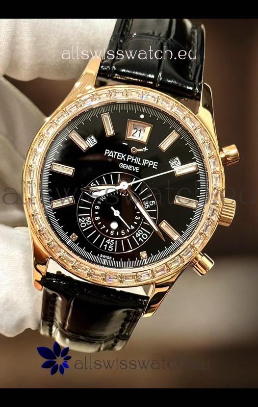 Patek Philippe Super Clone Complications 5961 Rose Gold Watch with Mossanites