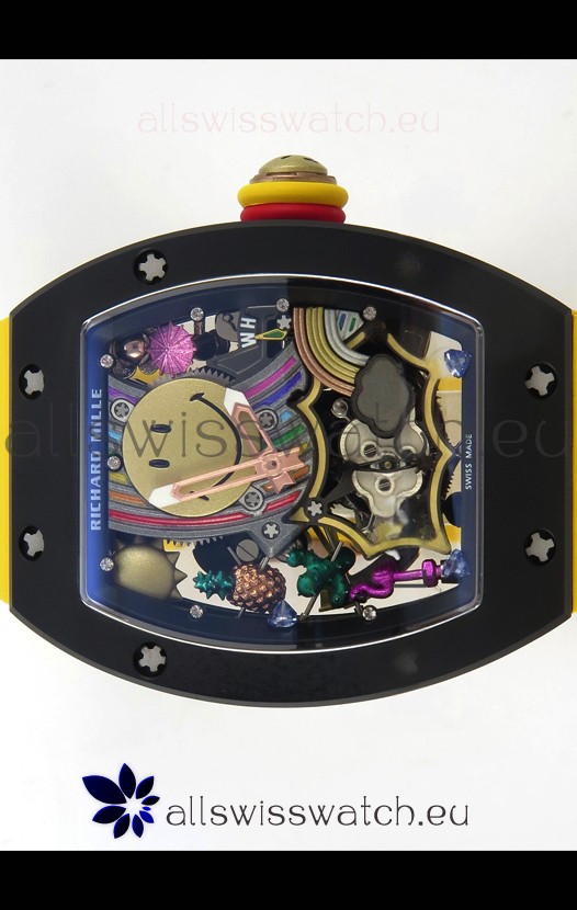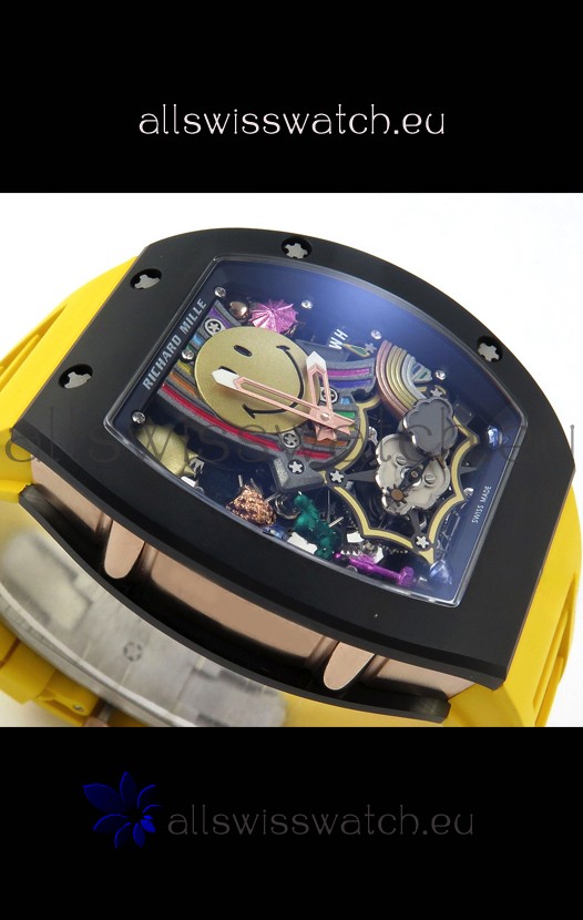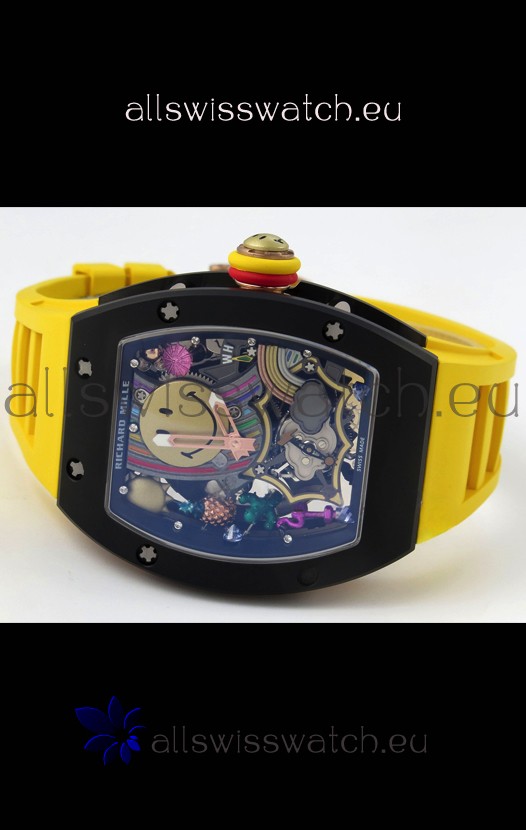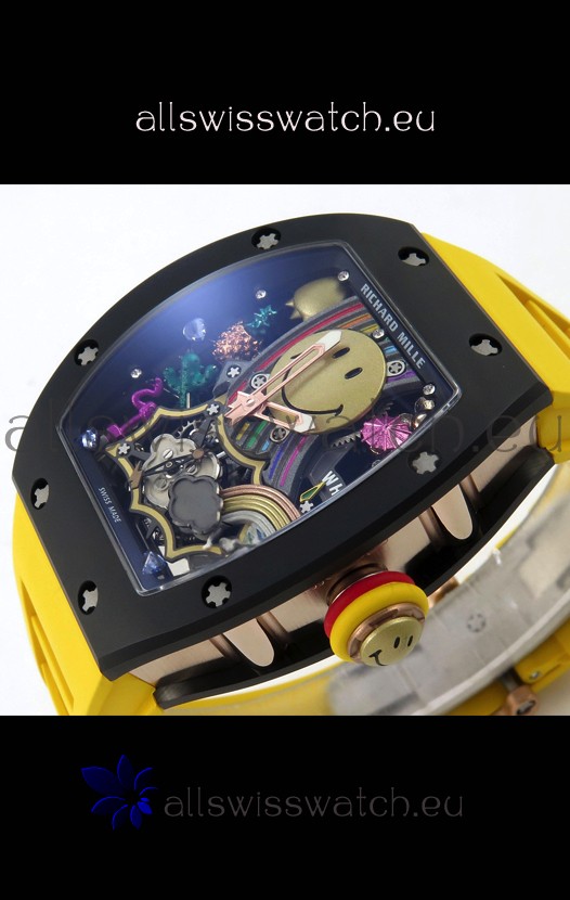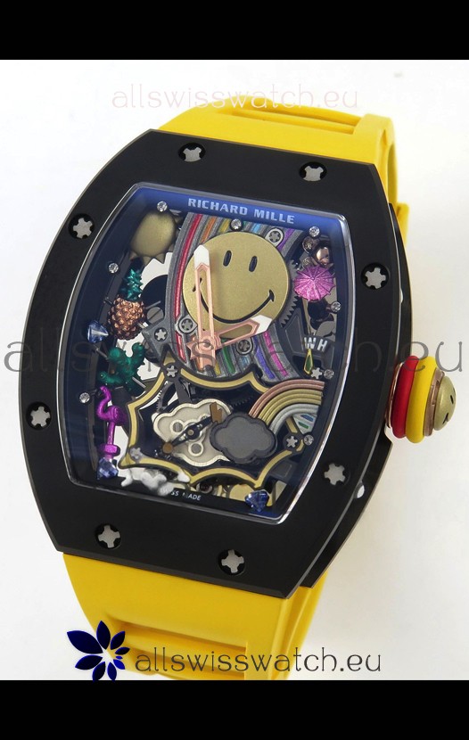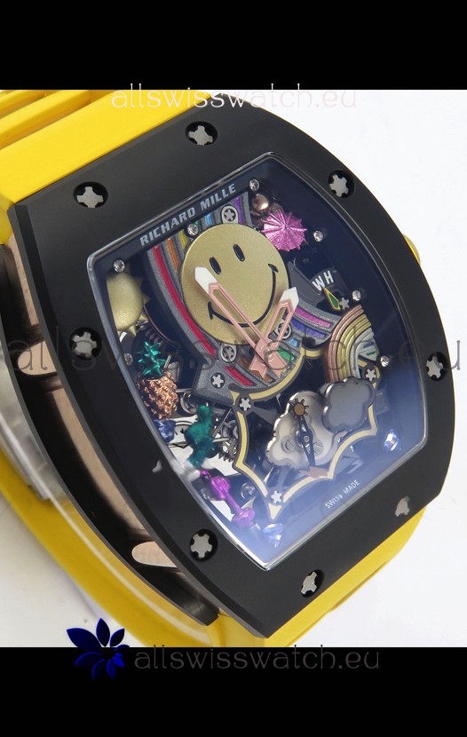 Richard Mille Super Clone RM088 Smiley Tourbillon Black Ceramic Rubber Strap Watch
