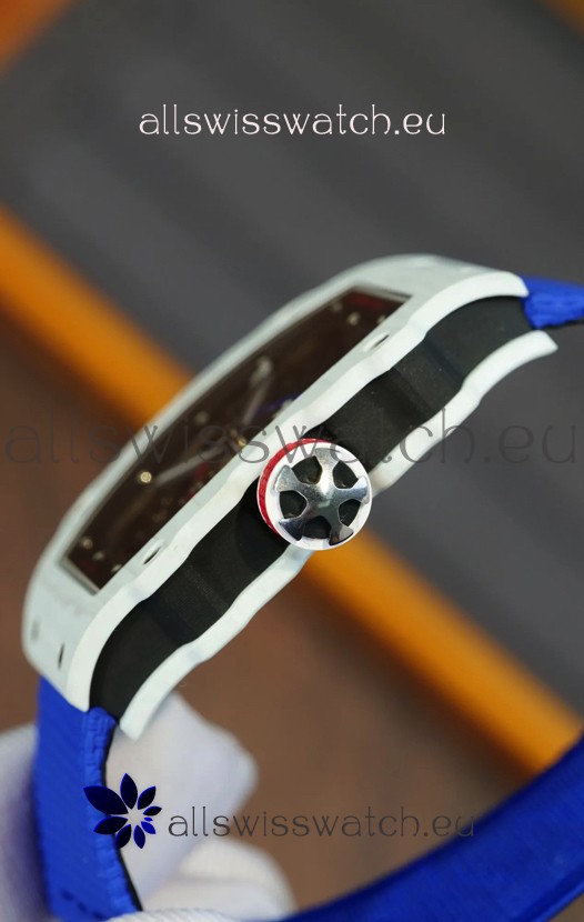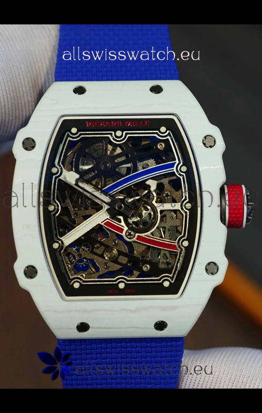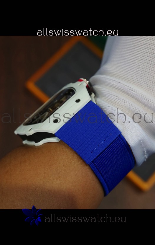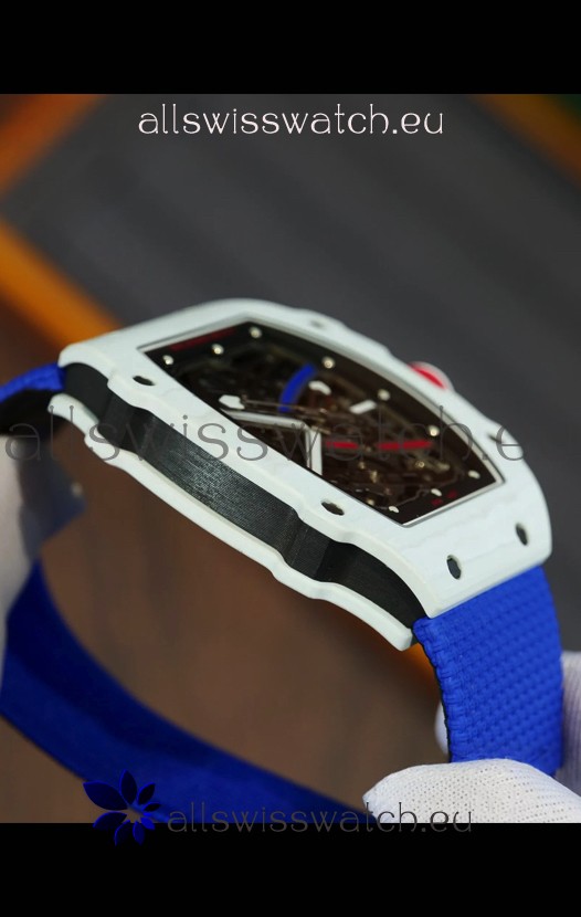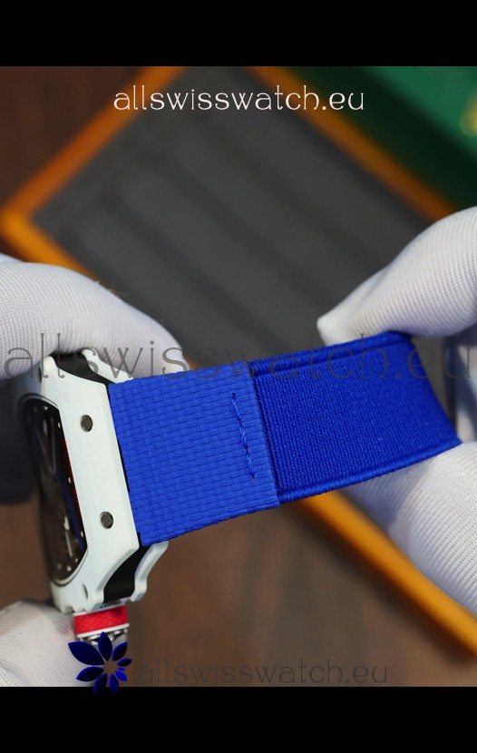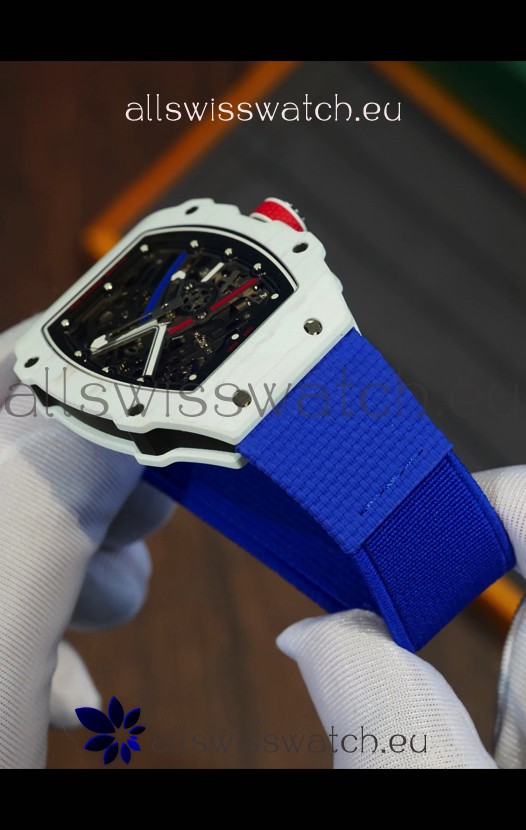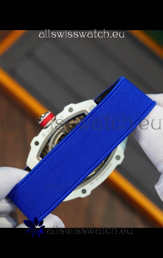 Richard Mille Super Clone RM67-02 Alexis Pinturault White Quartz TPT 37 Grams Watch Blue Strap
