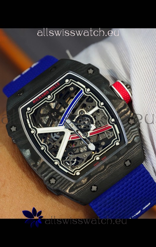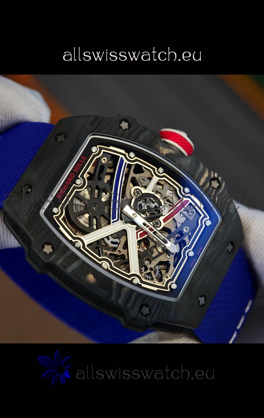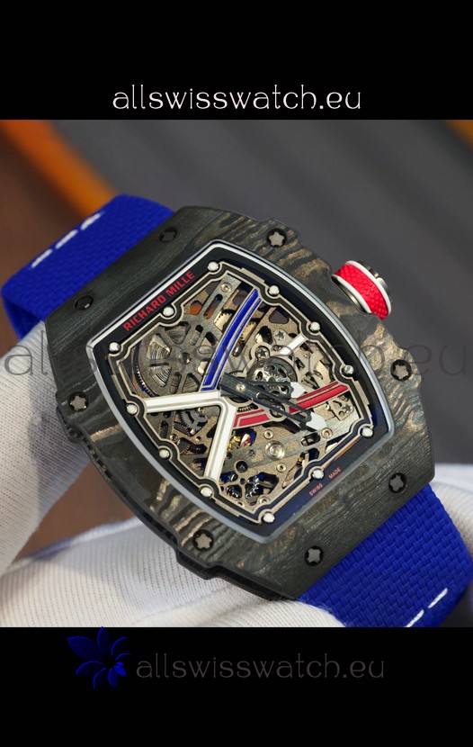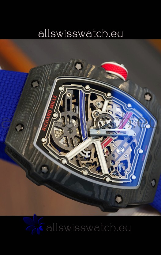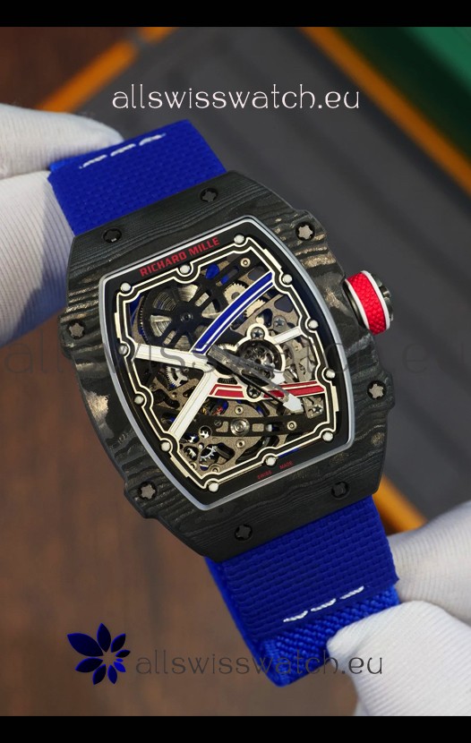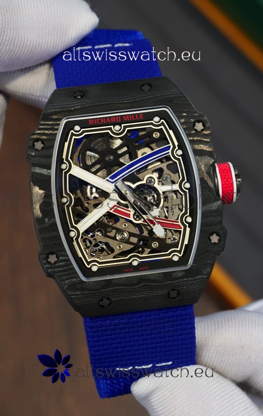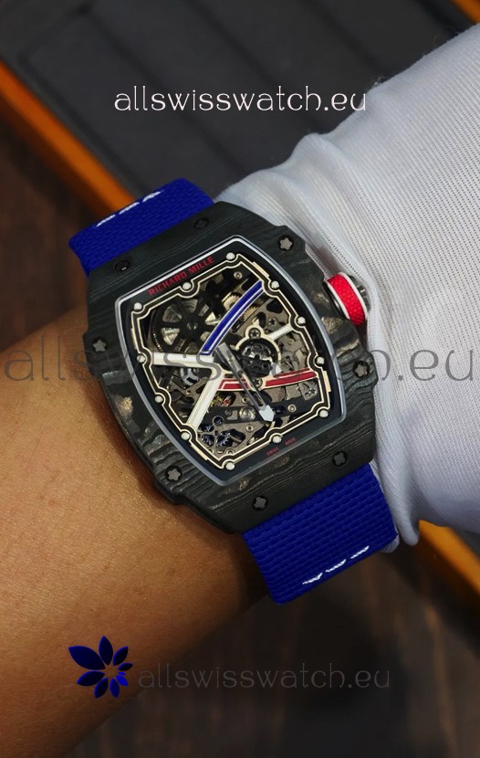 You're reviewing: Richard Mille Super Clone RM67-02 Sebastien Ogier Black Carbon TPT 37 Grams Watch Blue Strap