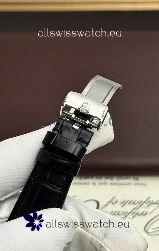 Genuine Black Leather Strap with Stainless Steel Deployant Clasps