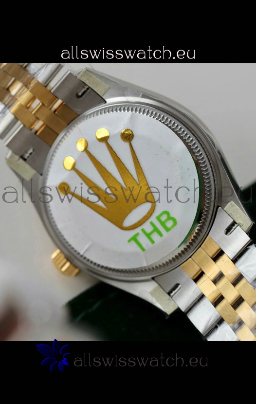 18K Yellow Gold Plating on 904L Stainless Steel Two Tone Polished Case with Bezel as per the original.
