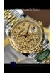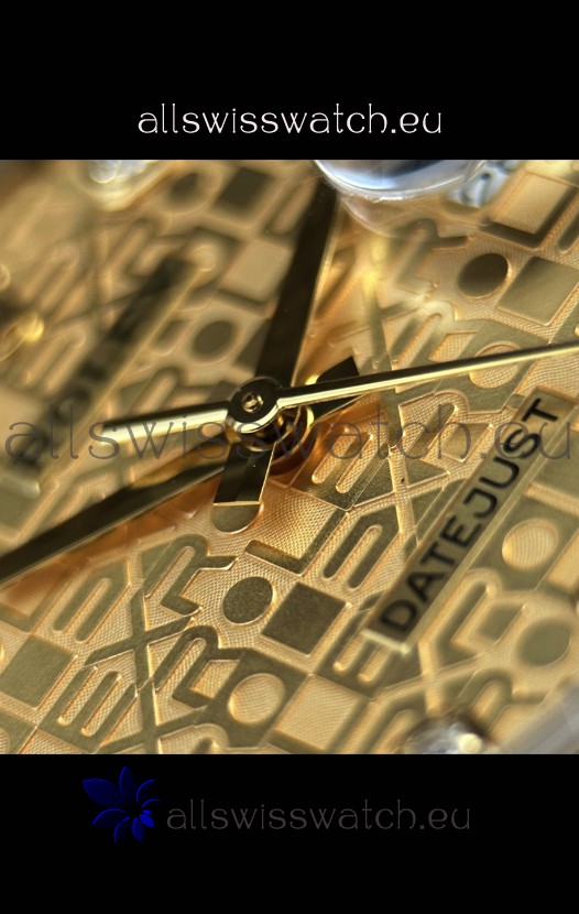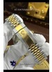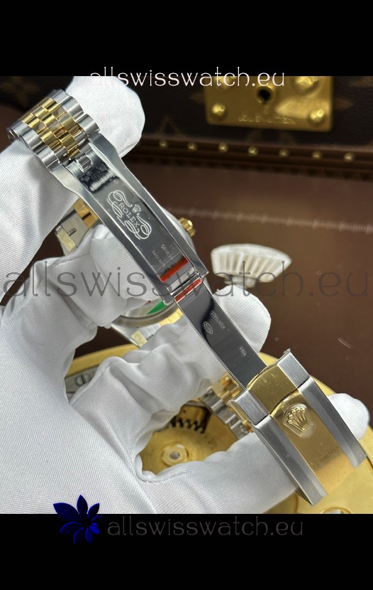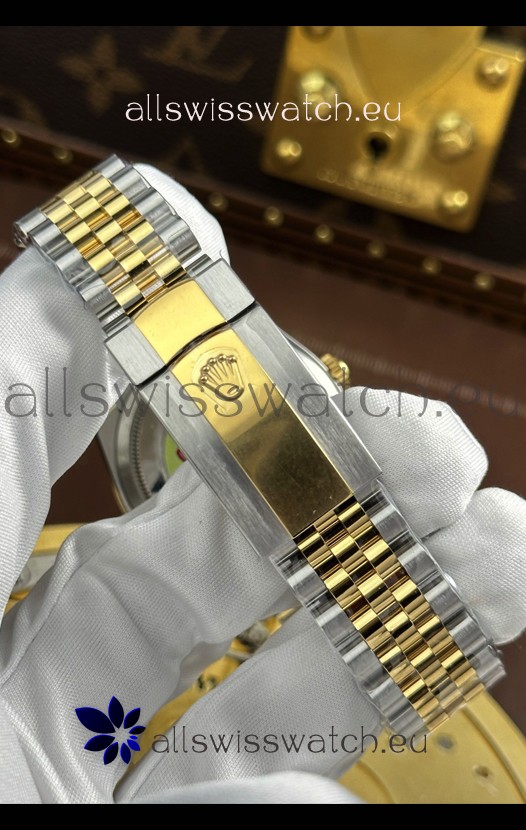 18K Yellow Gold Plating Two Tone 904L Stainless Steel Two Tone Strap with New Style Rolesor Deployant Buckle, End links match up Flush with the Case. - A Much Improved Datejust Strap Version