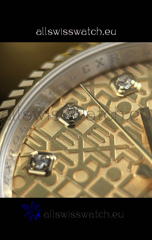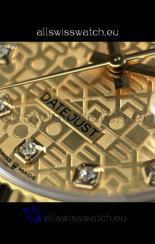 Gold Computer Dial with Diamonds Hour Numerals and Date Indicator
