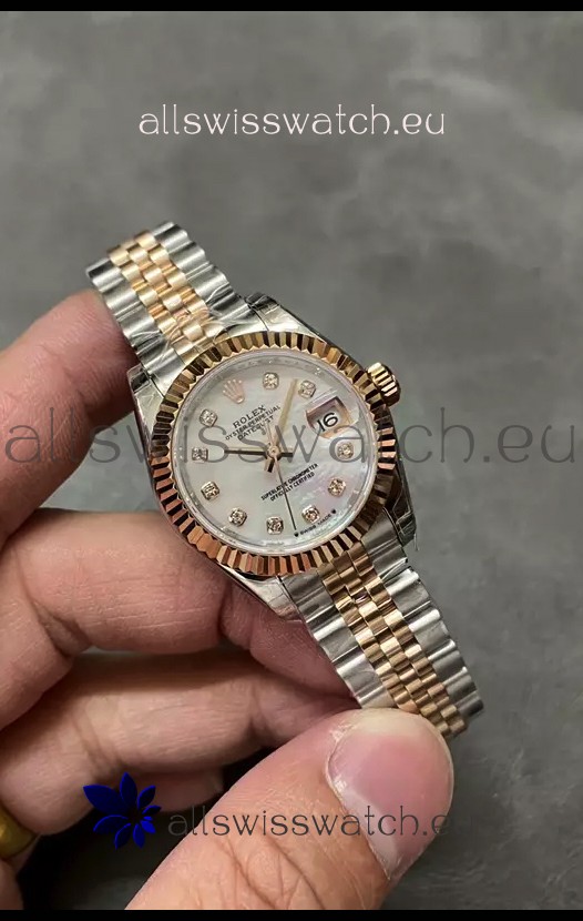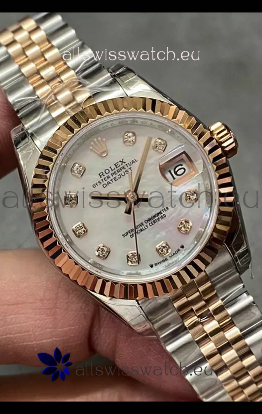 Rolex Datejust Super Clone Mother of Pearl Dial 2 Tone Rose Gold Watch 28MM