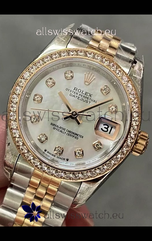 Rolex Datejust Super Clone Mother of Pearl Dial 2 Tone Rose Gold Watch 28MM