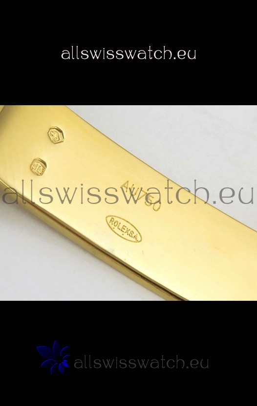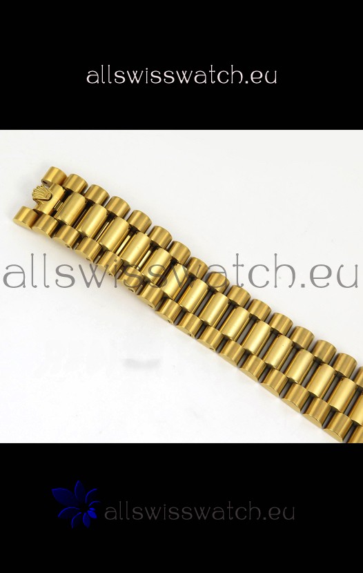 18K Yellow Gold Plating on 904L Stainless Steel New Design President Strap with Folding Clasps complete with Rolex Markings and Engravings