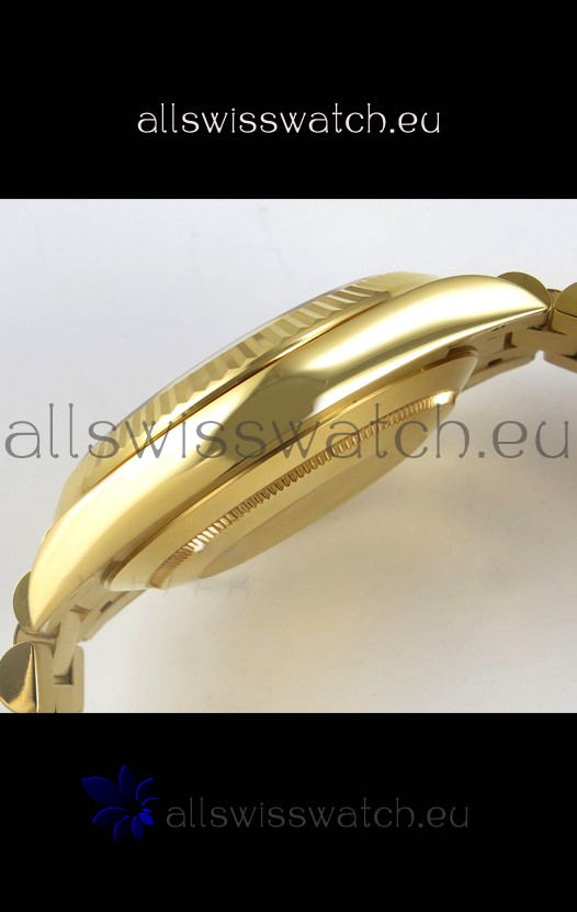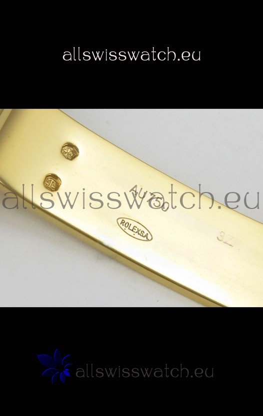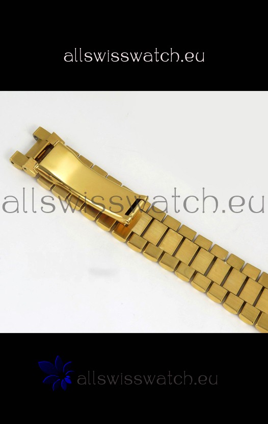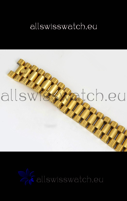 18K Yellow Gold Plating on 904L Stainless Steel New Design President Strap with Folding Clasps complete with Rolex Markings and Engravings