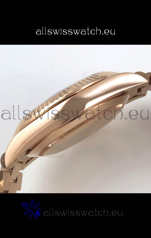 18K Rose Gold Plating on 904L Steel Case complete with all Rolex Markings and Engravings as per the Originals