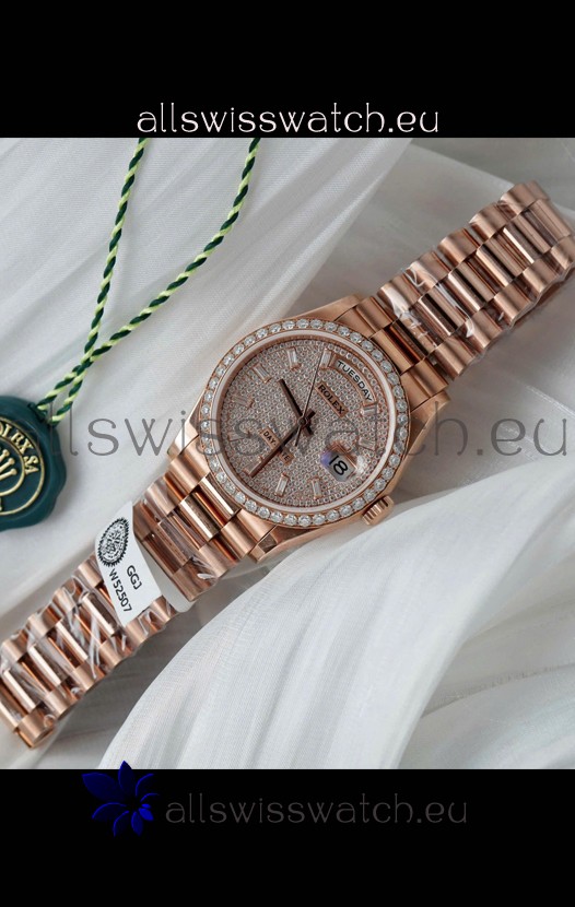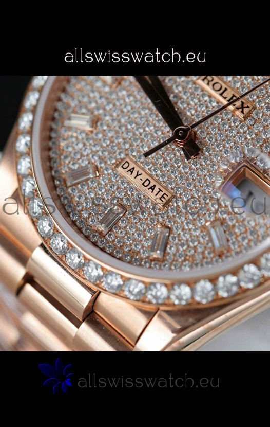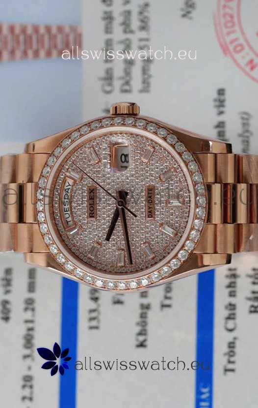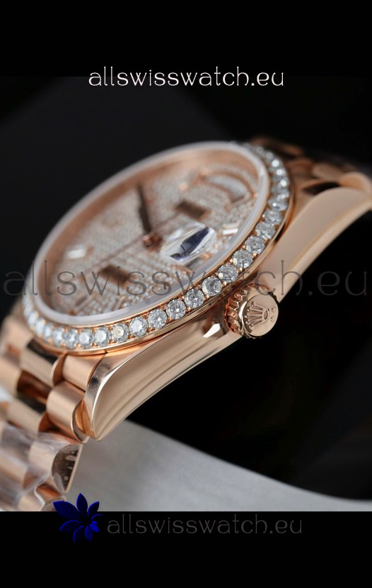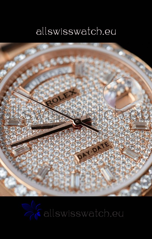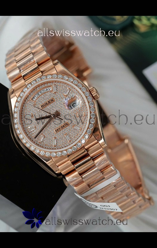 Rolex Day Date Super Clone Rose Gold Plated Custom Modified Diamonds Paved Watch