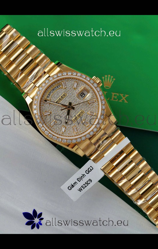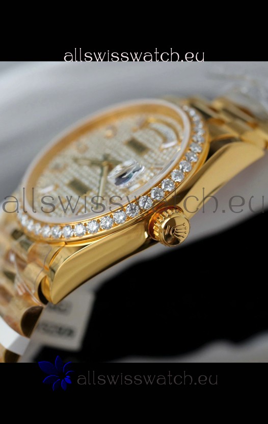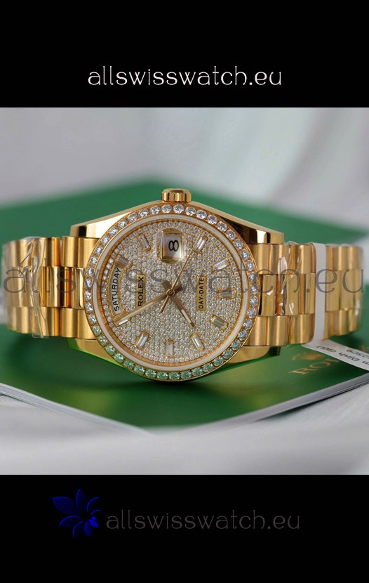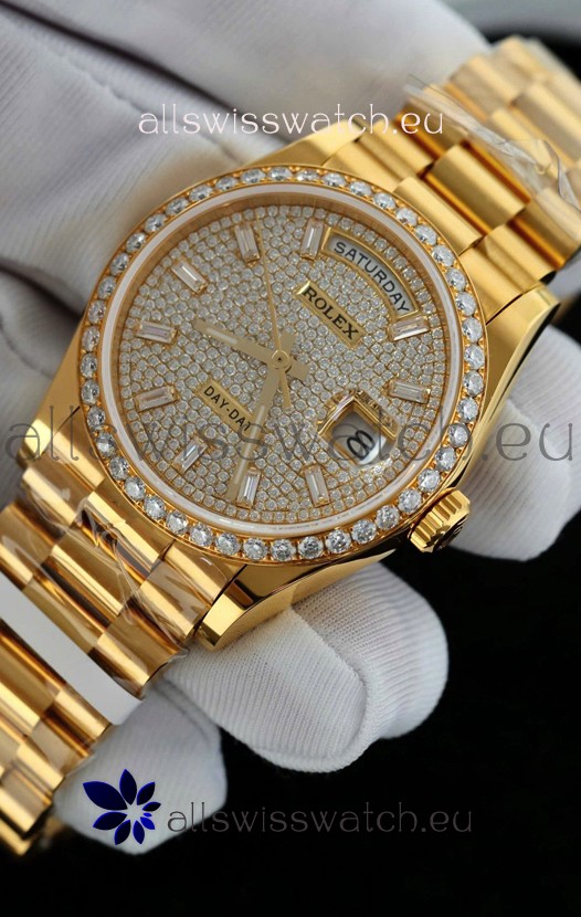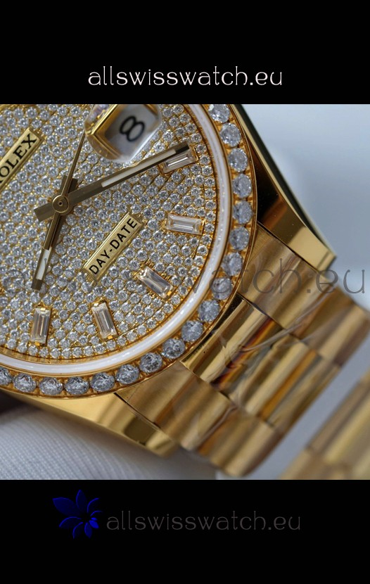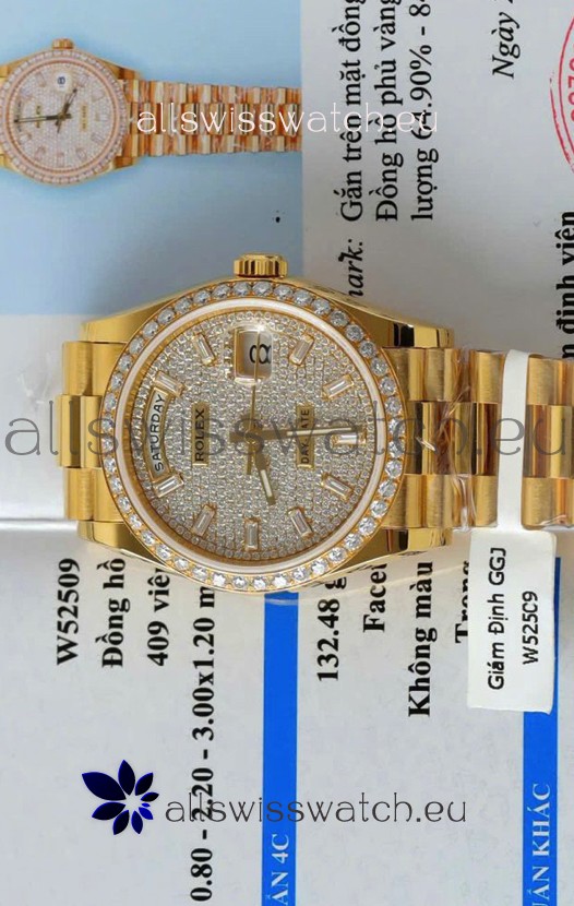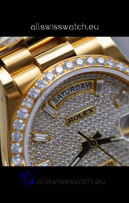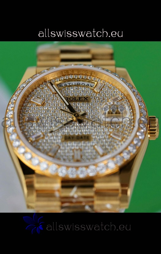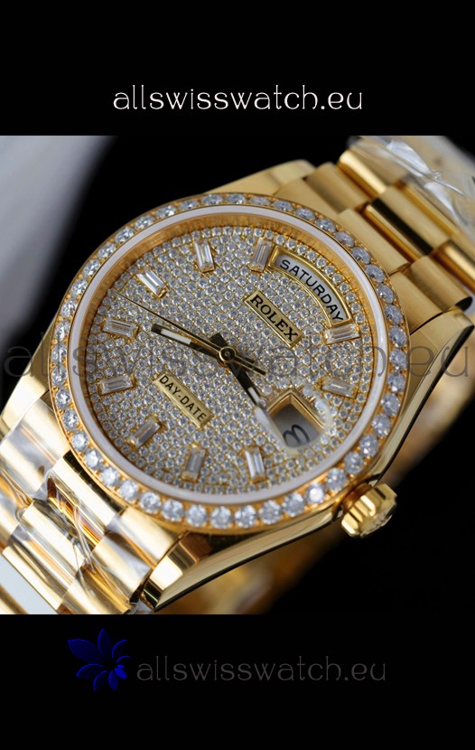Rolex Day Date Super Clone Yelllow Gold Plated Custom Modified Diamonds Paved Watch