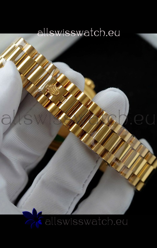 18K Yellow Gold Plating on 904L Stainless Steel New Design President Strap with Folding Clasps complete with Rolex Markings and Engravings