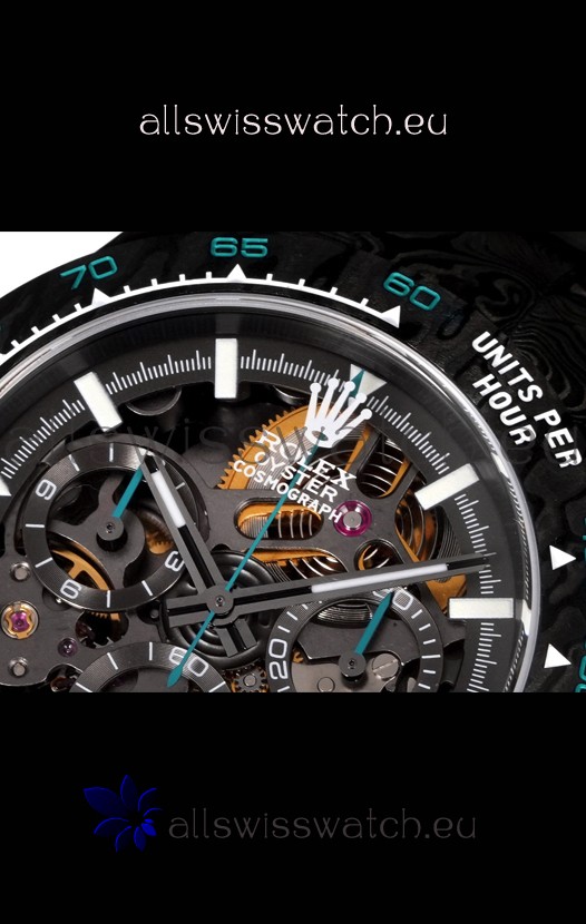 Rolex Daytona Blaken Black Carbon 1:1 Swiss Mirror Replica Skeleton Dial Cal.4130 Movement