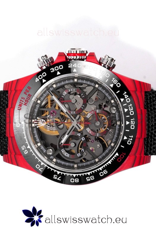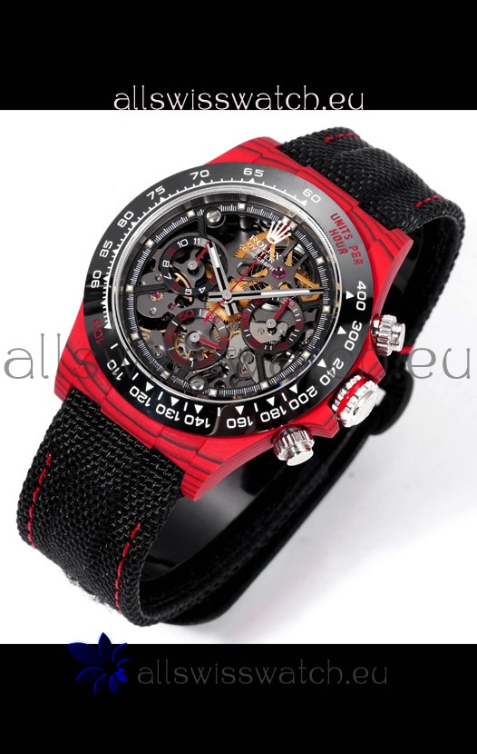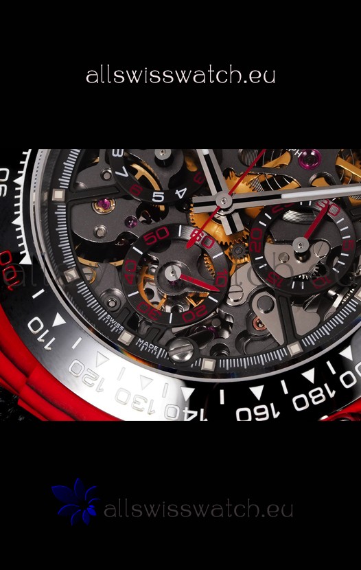 Rolex Daytona Blaken Red Carbon 1:1 Swiss Mirror Replica Skeleton Dial Cal.4130 Movement