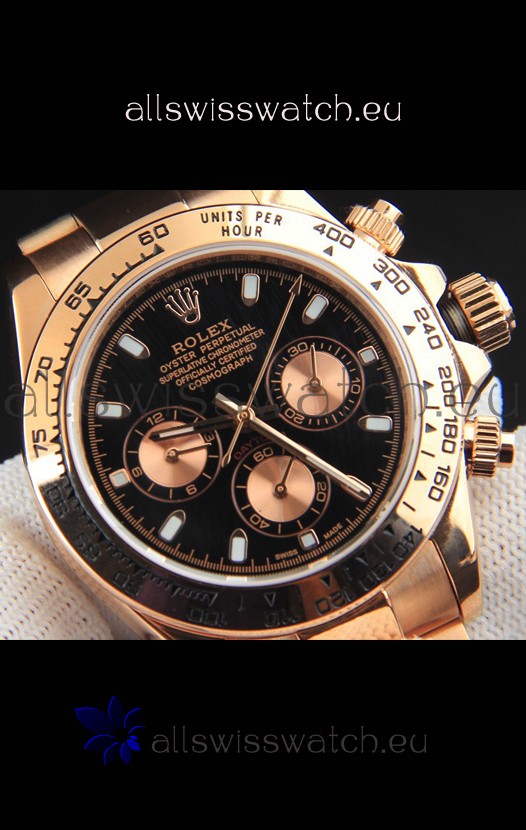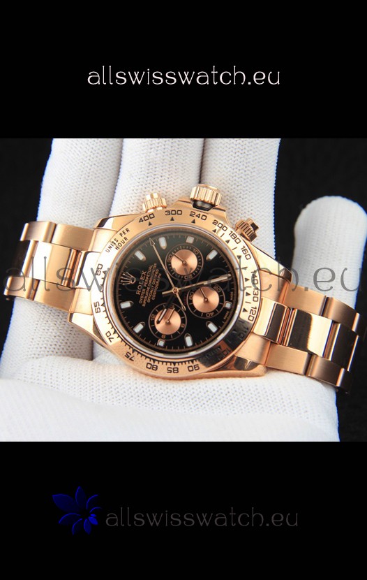 You're reviewing: Rolex Daytona Japanese Movement Gold Casing Replica Watch in Black Dial