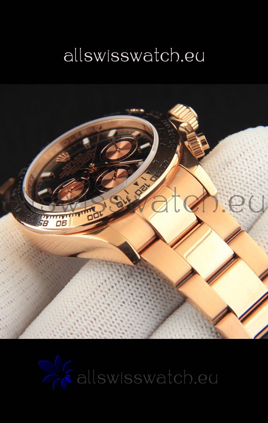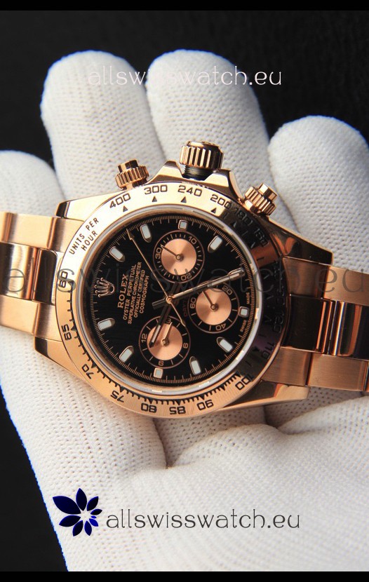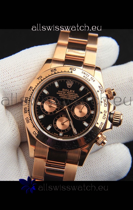 Rolex Daytona Japanese Movement Gold Casing Replica Watch in Black Dial