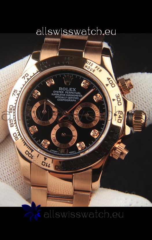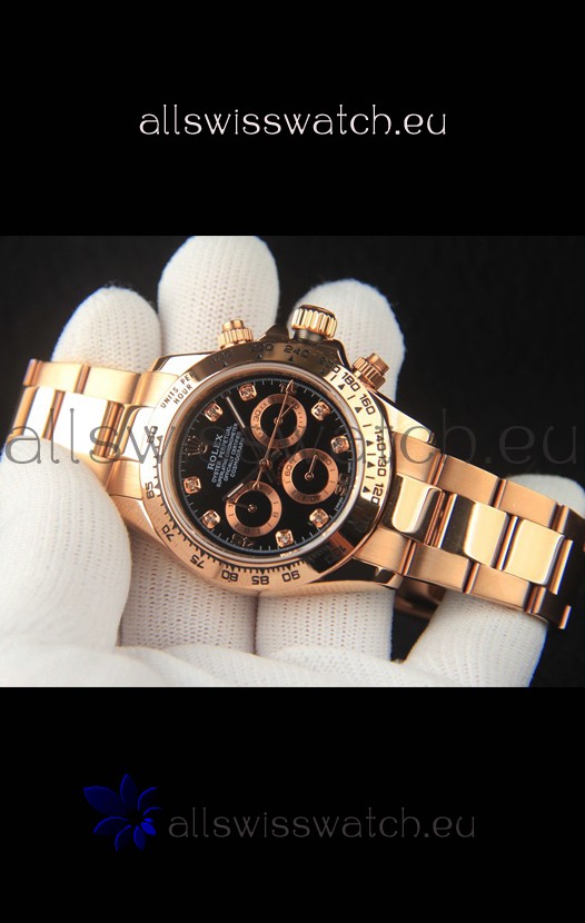 You're reviewing: Rolex Daytona Japanese Movement Gold Casing Replica Watch in Black Dial