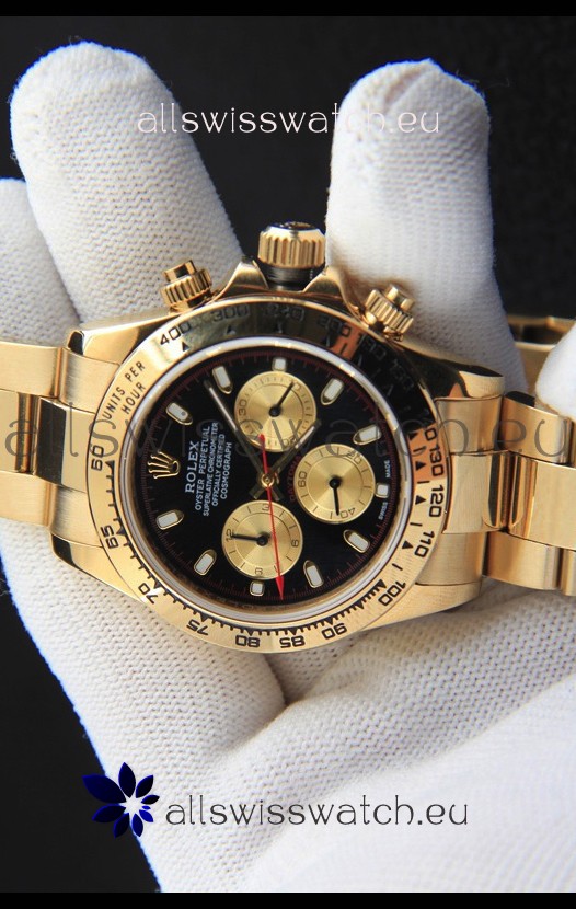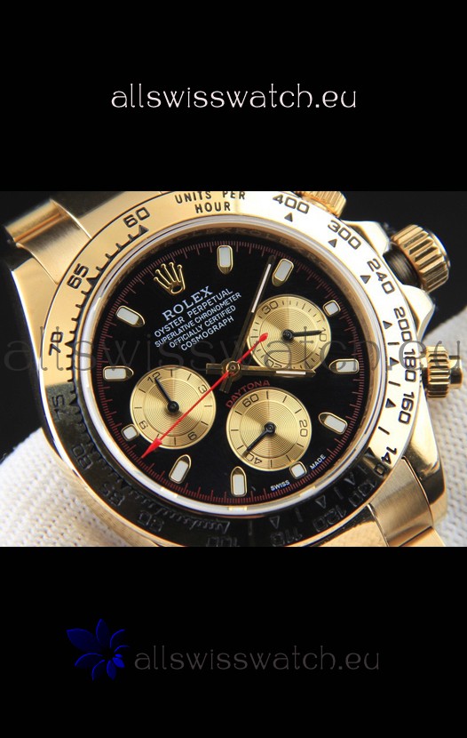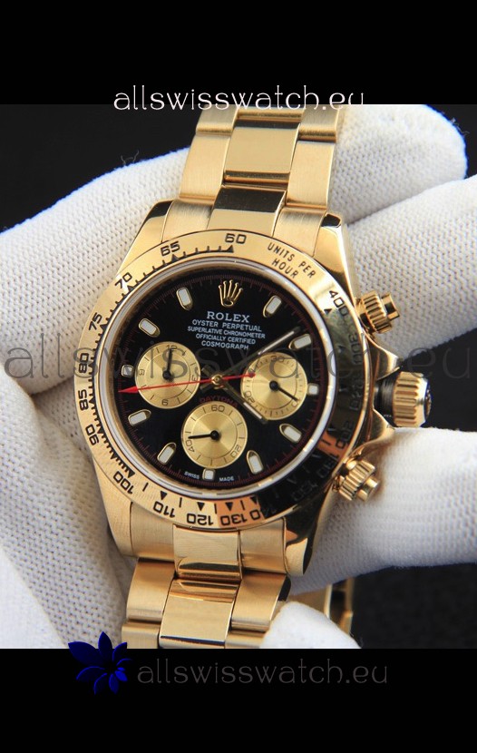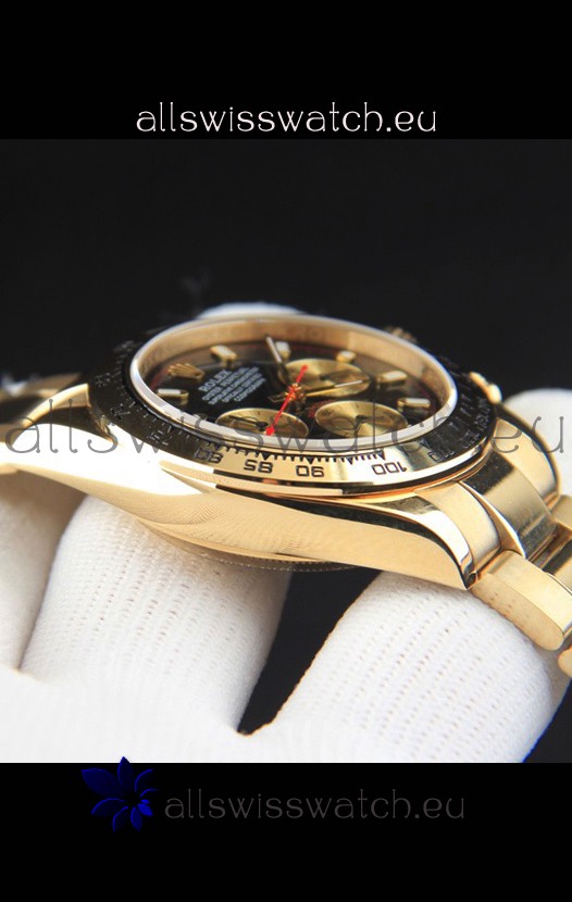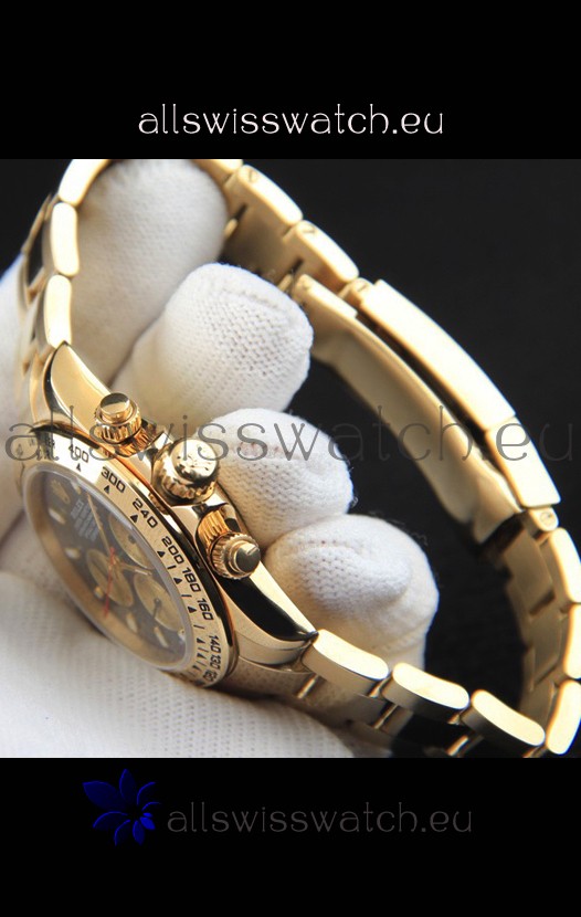 Rolex Daytona Japanese Movement Gold Casing Replica Watch in Black Dial
