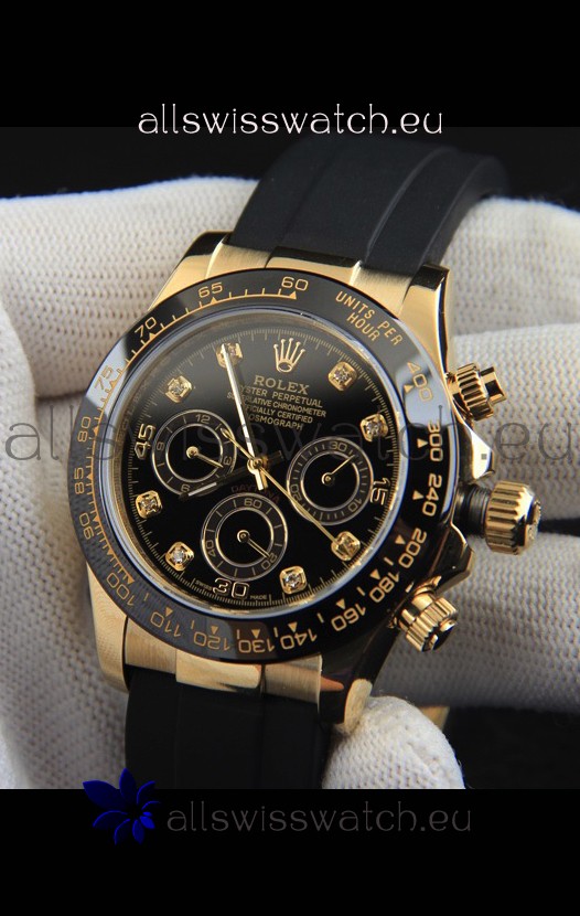 You're reviewing: Rolex Daytona Japanese Movement Gold Casing Replica Watch in Black Dial
