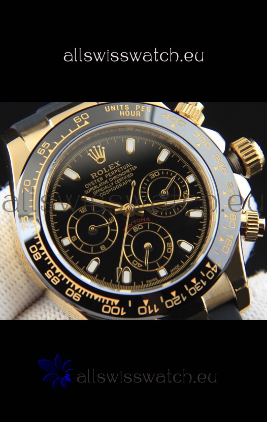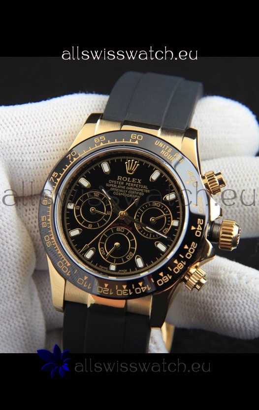 Rolex Daytona Japanese Movement Gold Casing Replica Watch in Black Dial