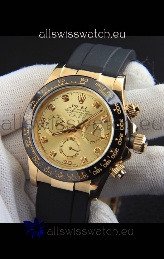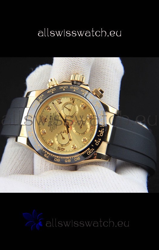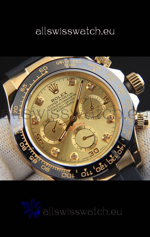 You're reviewing: Rolex Daytona Japanese Movement Gold Casing Replica Watch in Gold Dial