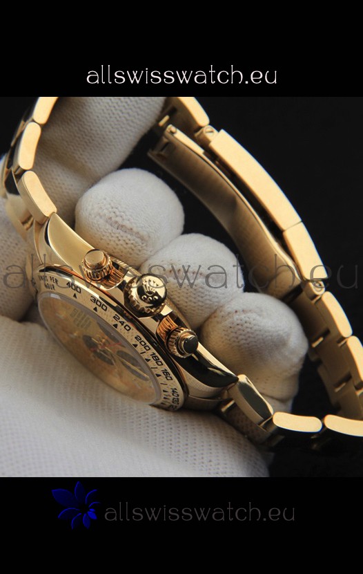 You're reviewing: Rolex Daytona Japanese Movement Gold Casing Replica Watch in Gold Dial
