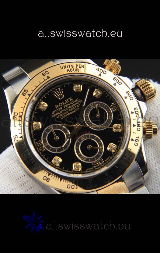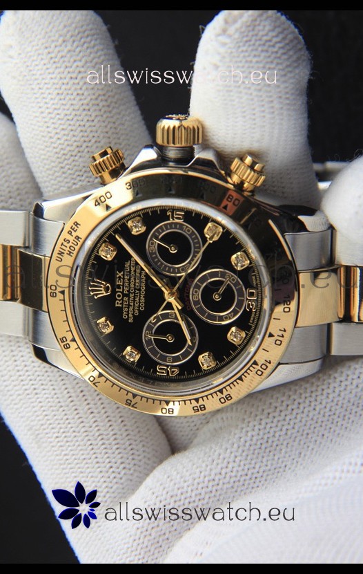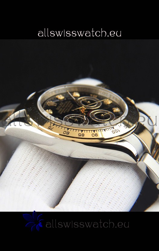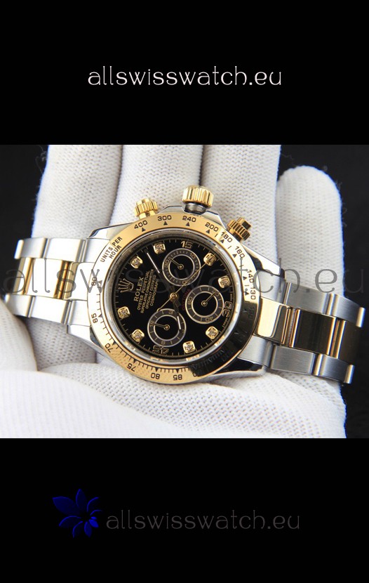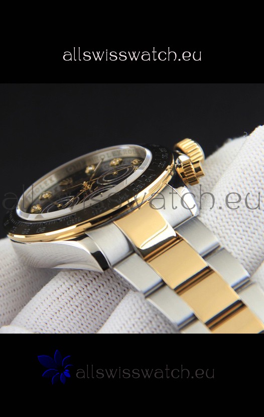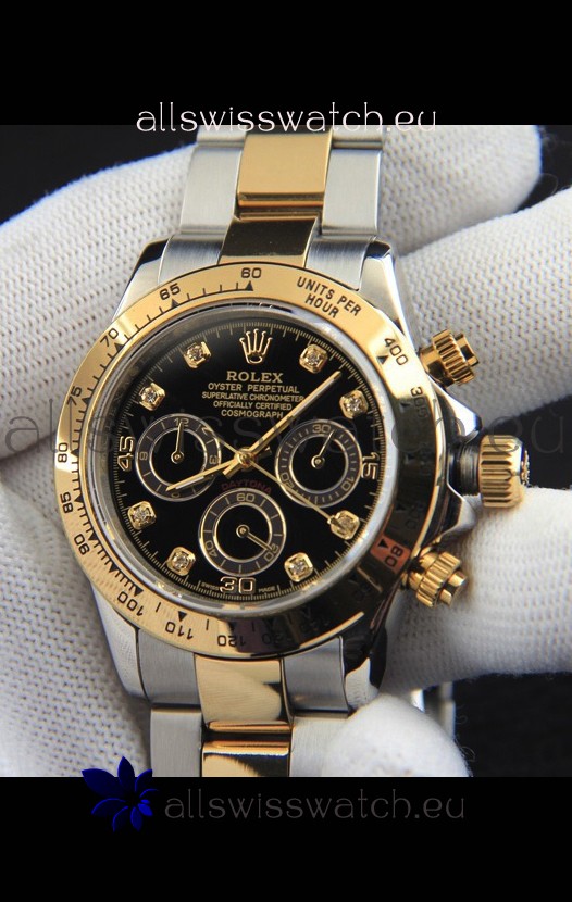 Rolex Daytona Japanese Movement Two Tone Gold Casing Watch in Black Dial
