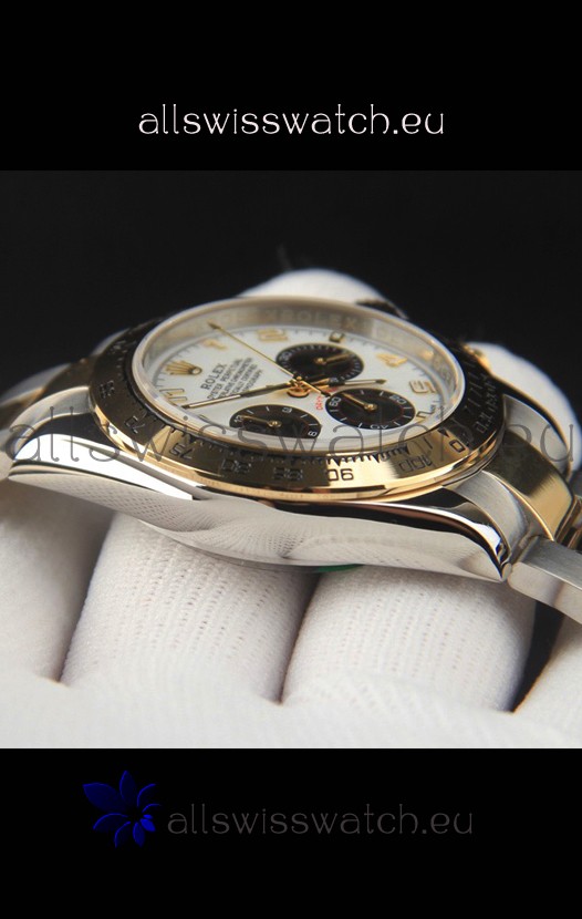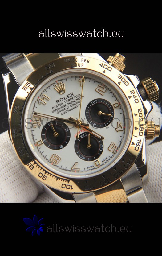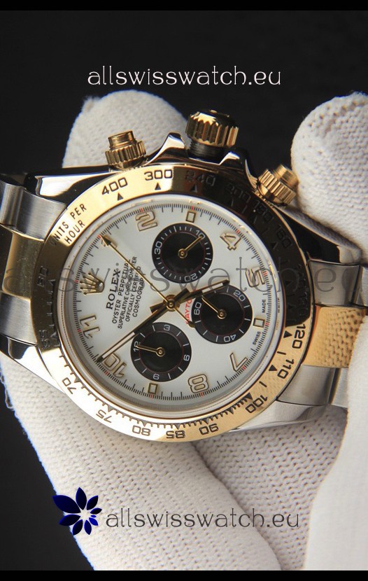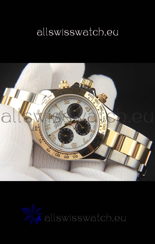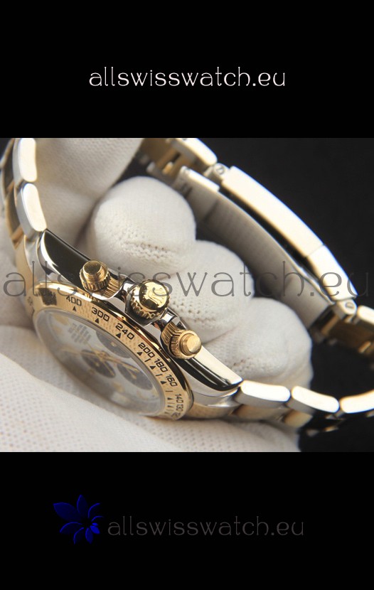 Rolex Daytona Japanese Movement Two Tone Gold Casing Watch in White Dial