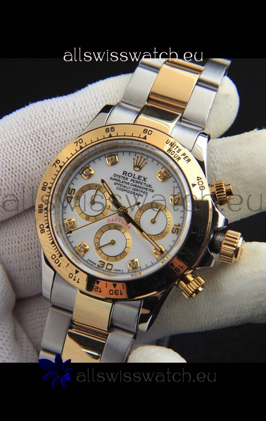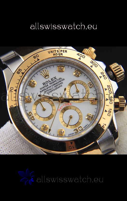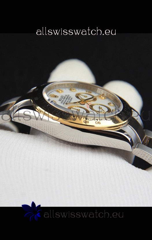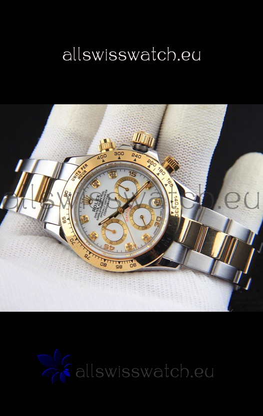 Rolex Daytona Japanese Movement Two Tone Gold Casing Watch in White Dial