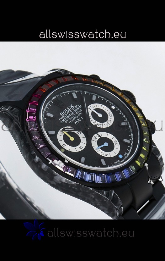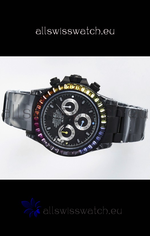 The Best Rolex Daytona Model Replicated up to Date. The First Rolex model to adopt a 904L Steel on Casing and Strap which is the same steel used by Rolex. Compared with an Original Side by Side and there were NO Differences Whatsoever. Complete list of details have been stated below and you will see that tremendous amount of detaiing and work has been put into this edition.