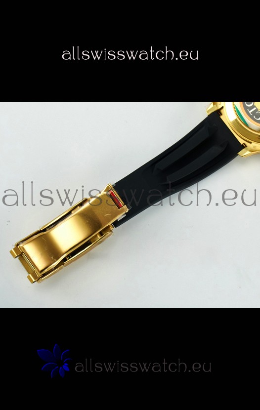 Yellow Gold Plating on 904 Solid Stainless Case with Rolex Markings and Engravings like the Authentic.