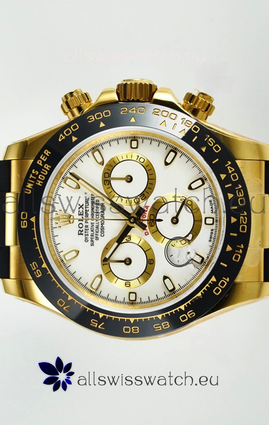 Rolex Daytona Super Clone 116518 Yellow Gold White Dial Original Cal.4130 Movement