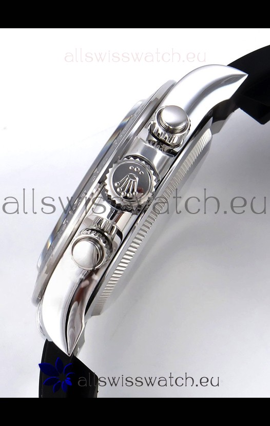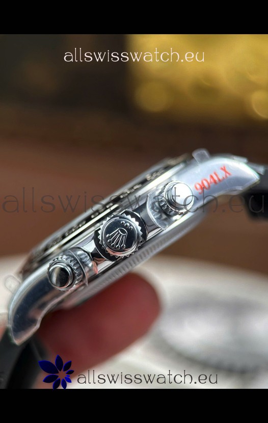 The Best Rolex Daytona Model Replicated up to Date. The First Rolex model to adopt a 904L Steel on Casing and Strap which is the same steel used by Rolex. Compared with an Original Side by Side and there were NO Differences Whatsoever. Complete list of details have been stated below and you will see that tremendous amount of detaiing and work has been put into this edition.
